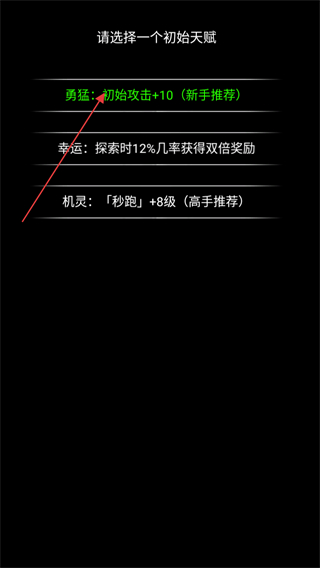 1、進(jìn)入游戲后點(diǎn)擊選擇一項(xiàng)初始天賦,可以優(yōu)先選擇新手推薦的天賦屬性。