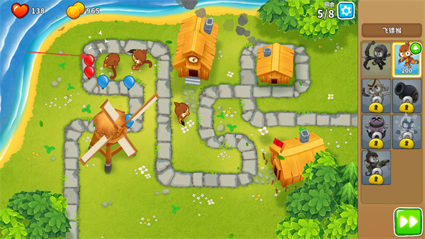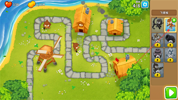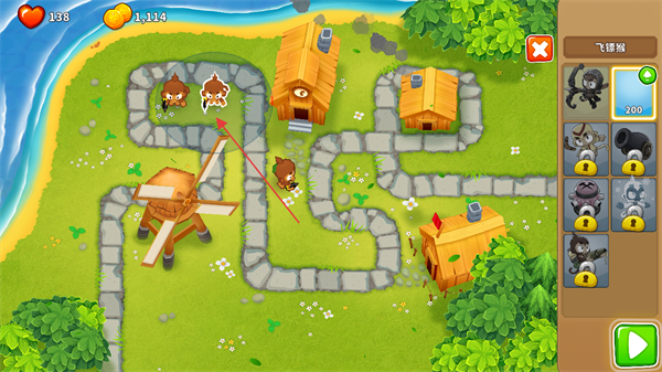 3、游戲關(guān)卡玩法目的就是阻止氣球進入到最后的終點處,通過布局擊破所有氣球。