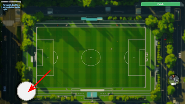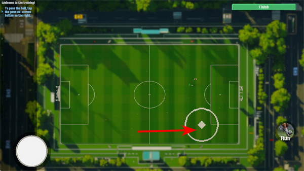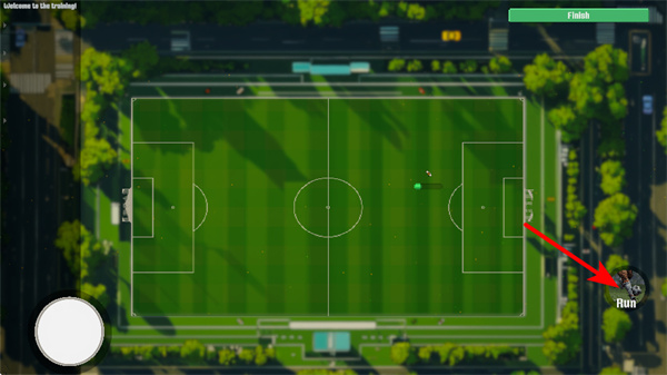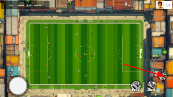 2、點(diǎn)擊右側(cè)Run按鈕,可讓球員加速奔跑,這是快速追球或突破防守的關(guān)鍵操作,使用時結(jié)合場上局勢選擇時機(jī)。