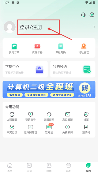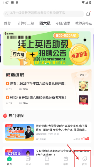 1、打開學(xué)習(xí)類應(yīng)用,點(diǎn)擊底部我的選項(xiàng),進(jìn)入個(gè)人中心頁面。