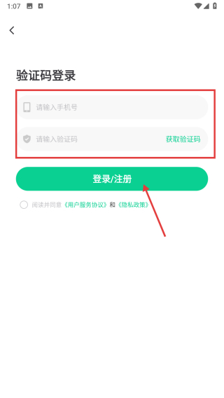 4、輸入手機(jī)號(hào)碼和驗(yàn)證碼,勾選協(xié)議后點(diǎn)擊登錄/注冊(cè)按鈕,完成賬號(hào)登錄。