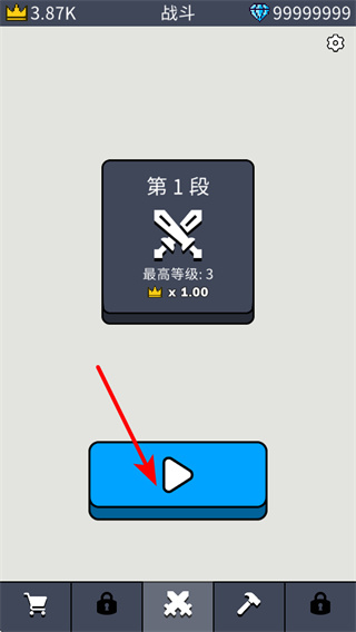 1、進入游戲后,點擊藍色開始按鈕可開啟戰(zhàn)斗階段,策略對決的關鍵操作,點擊時需確認當前戰(zhàn)斗階段的等級和獎勵。