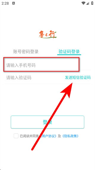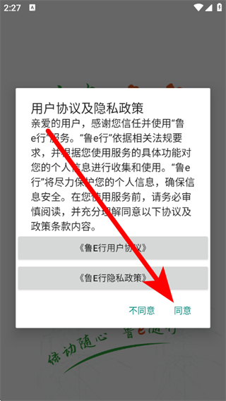1、打開魯e行,在隱私政策彈窗中,點(diǎn)擊同意。