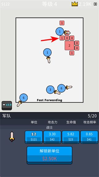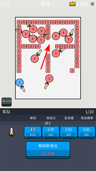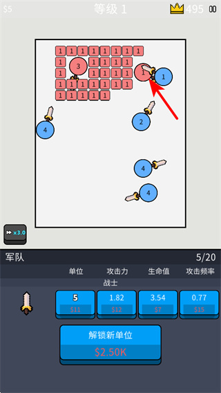 1、游戲中派遣不同等級的單位攻擊對應數(shù)字區(qū)域,攻擊時優(yōu)先選擇數(shù)字與單位等級匹配的區(qū)域,確保攻擊效率最大化。