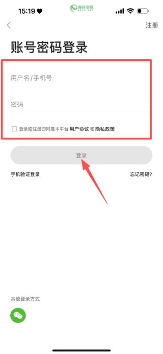 4、在賬號(hào)密碼登錄頁面,輸入用戶名/手機(jī)號(hào)和密碼,點(diǎn)擊登錄,完成登錄操作。
