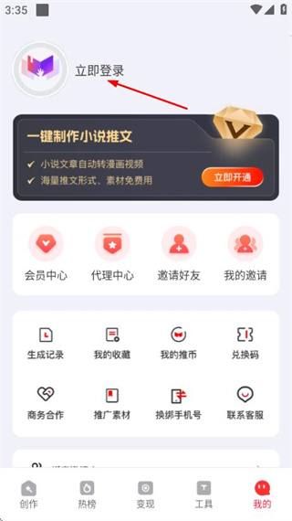 2、在個人頁面點擊立即登錄,進入推文助手的登錄界面。