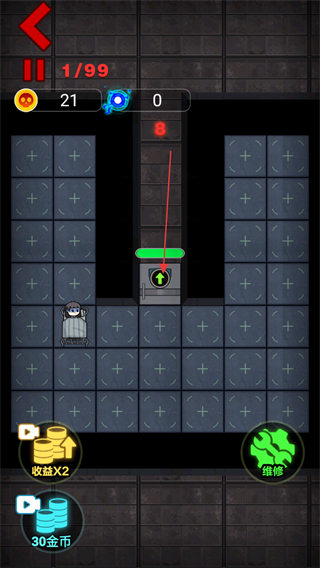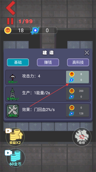 4、點(diǎn)擊房間任意空白區(qū)域,可以建造基礎(chǔ)攻擊設(shè)施,防御噬夢(mèng)者的攻擊。