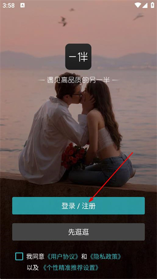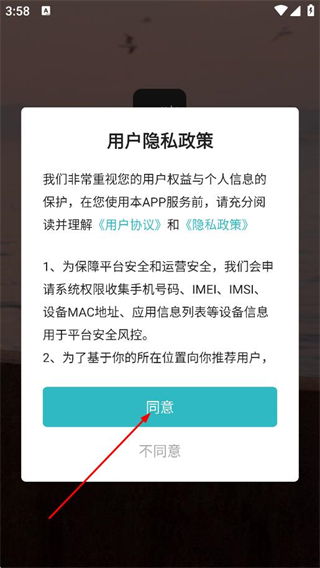 1、在APP用戶協(xié)議彈窗中,點(diǎn)擊同意,進(jìn)入登錄注冊(cè)頁面。