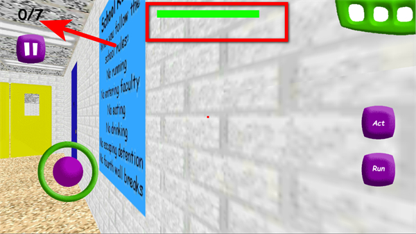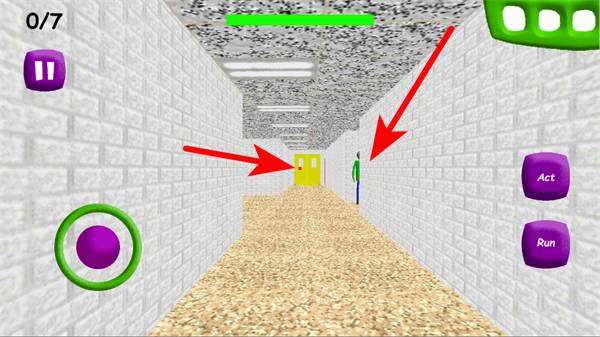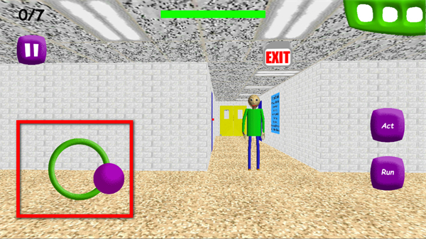 1、通過左側(cè)虛擬搖桿控制角色移動,躲避巴迪老師的追捕。