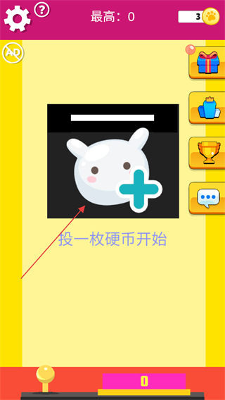 1、進(jìn)入游戲后,初始界面類似于娃娃機(jī)的造型,通過投幣開始游戲。