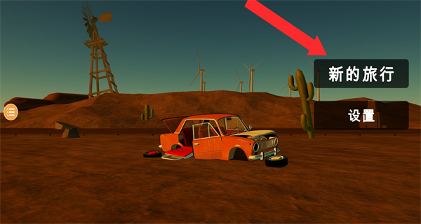 1、進(jìn)入游戲界面后,點(diǎn)擊新的旅行開啟冒險(xiǎn),這是游戲開始的關(guān)鍵操作,準(zhǔn)確點(diǎn)擊才能進(jìn)入汽車組裝與旅行場景。