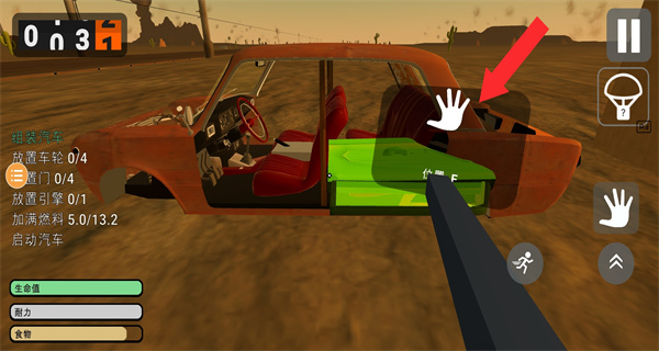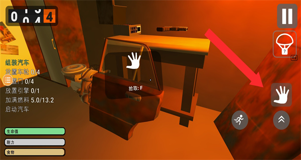 2、游戲中點(diǎn)擊右側(cè)拾取按鈕,拾取汽車部件如車門,注意觀察部件分布位置,確保順利收集組裝汽車的必要零件。
