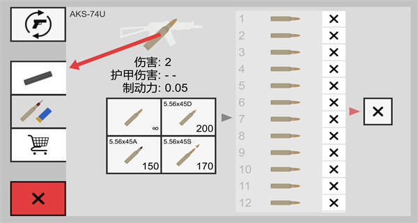 3、在武器設(shè)置界面,點(diǎn)擊左側(cè)的消音器圖標(biāo),進(jìn)入消音器選擇界面。