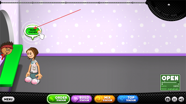 1、打開游戲進入冰棍店的運營,點擊顧客頭上的按鈕開始接單。