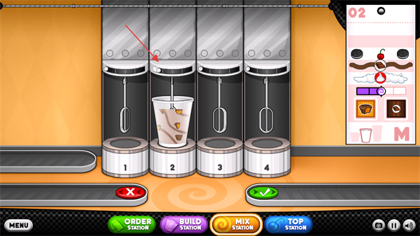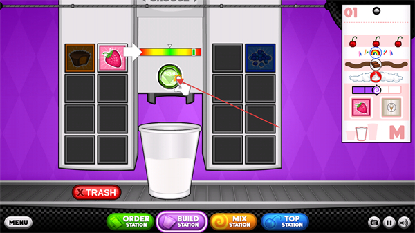 2、控制好機器的力度在綠色區(qū)域時,點擊按鈕倒入醬料。