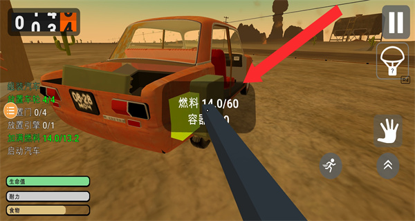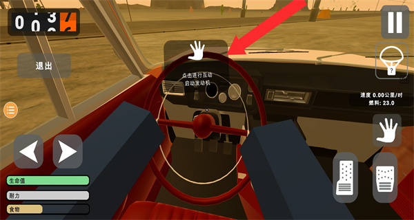 4、完成汽車組裝和燃料添加后,進(jìn)入駕駛界面,點(diǎn)擊啟動(dòng)按鈕發(fā)動(dòng)汽車,之后通過油門和方向控制鍵操控汽車行駛,正式開啟長(zhǎng)途之旅。