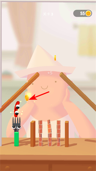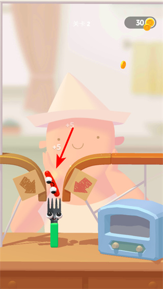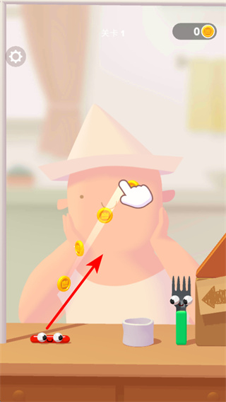 3、游戲中利用叉子等道具的助力,讓小蟲(chóng)沿箭頭方向跳躍,跳躍時(shí)需把握時(shí)機(jī),確保小蟲(chóng)能安全到達(dá)目標(biāo)位置。