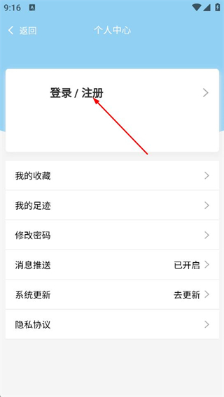 2、在個人中心頁面,點擊登錄/注冊,進入登錄選擇頁面。