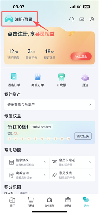 2、在個人中心,點擊注冊/登錄區(qū)域,進入登錄方式選擇界面。