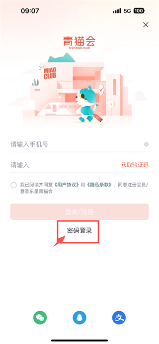 3、選擇密碼登錄選項,進入賬號密碼輸入頁面。
