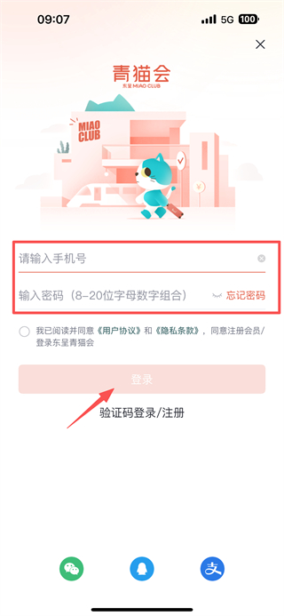 4、輸入手機號碼和密碼,完成賬號登錄操作。
