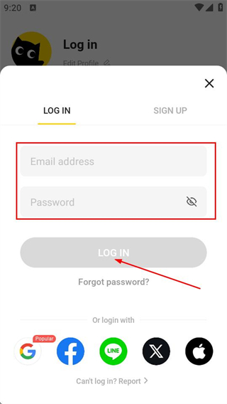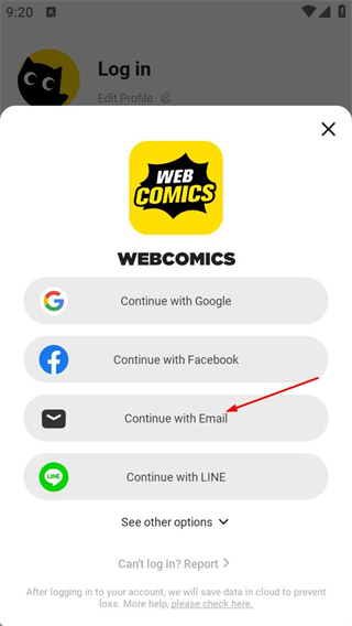 3、在登錄方式選擇界面點(diǎn)擊郵箱登錄,進(jìn)入郵箱登錄頁(yè)面。