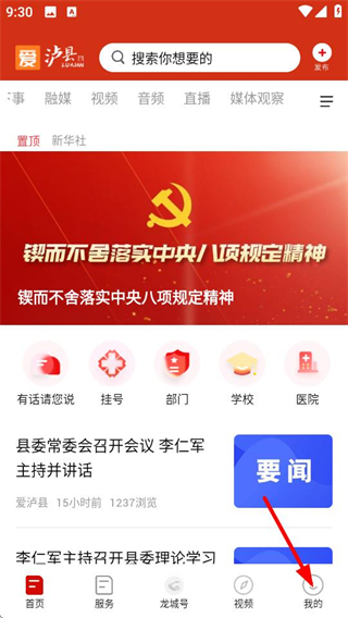 1、在愛瀘縣首頁,點擊右下角我的選項,進入個人頁面。