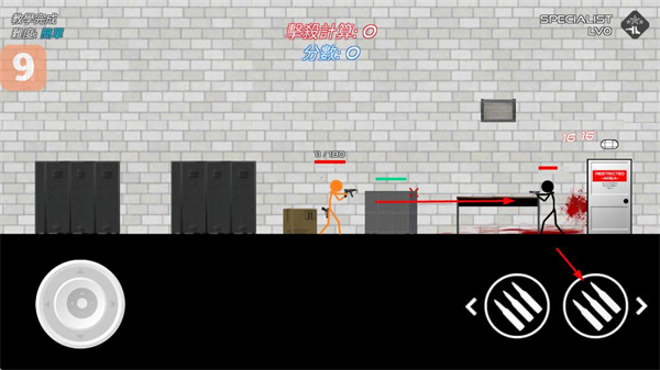 2、選擇武器進(jìn)行射擊,消滅敵人推進(jìn)關(guān)卡,提升擊殺計(jì)數(shù)和分?jǐn)?shù)。