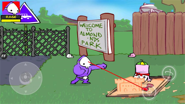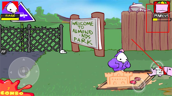 操作僅需搖桿移動(dòng)+按鈕攻擊,上手毫無(wú)難度,但創(chuàng)意空間極廣,可以用沙坑埋人、用路牌拍人,甚至借助內(nèi)置菜單的技能組合出奇葩連招,也能開發(fā)出整活套路。