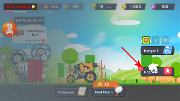 1、進入游戲后,點擊Upgrade按鈕可升級戰(zhàn)車或建筑,升級時需消耗資源,升級核心戰(zhàn)力單位提升對戰(zhàn)優(yōu)勢。