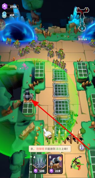 3、放置防御塔,在高臺(tái)放置防御塔,構(gòu)建防線,攻擊來(lái)犯敵人,保障基地安全,推進(jìn)塔防進(jìn)程。