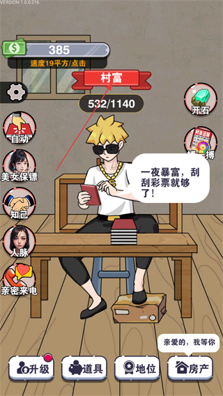 2、通過(guò)瘋狂點(diǎn)擊屏幕賺取租金,比拼誰(shuí)先達(dá)到規(guī)定數(shù)額即為勝利。