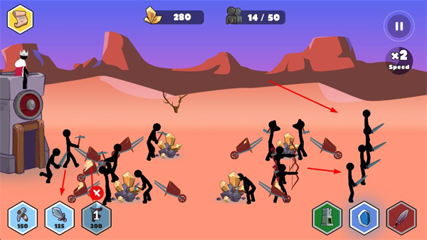 火柴人戰(zhàn)爭帝國戰(zhàn)爭mod菜單是一款以火柴人為角色的戰(zhàn)略戰(zhàn)爭類游戲,讓玩家隨時體驗戰(zhàn)爭策略的樂趣,玩家可制定巧妙戰(zhàn)略,指揮多元軍隊攻擊并摧毀敵方基地,靈活運用各類魔法強化團隊戰(zhàn)力,完成任務獲取豐厚獎勵以購買道具,掌握不同武器與戰(zhàn)斗方式,憑借戰(zhàn)術扭轉(zhuǎn)戰(zhàn)局,感受運籌帷幄的對戰(zhàn)魅力。
