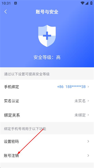 3、在賬號(hào)與安全頁(yè)面,點(diǎn)擊賬號(hào)注銷,進(jìn)入賬號(hào)注銷說明頁(yè)面。