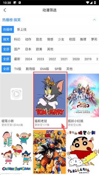 3、在篩選后的動(dòng)漫列表里,點(diǎn)擊貓和老鼠條目,進(jìn)入動(dòng)漫詳情頁(yè)。
