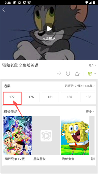 4、在動(dòng)漫詳情頁(yè),點(diǎn)擊第177集選項(xiàng),開(kāi)始觀看該集內(nèi)容。