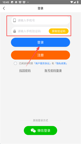 4、輸入手機號碼和驗證碼,點擊登錄按鈕,完成賬號登錄操作。