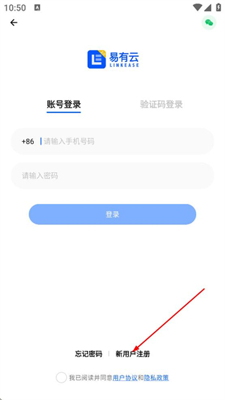 3、在登錄選擇頁面,點擊新用戶注冊,進入注冊界面。