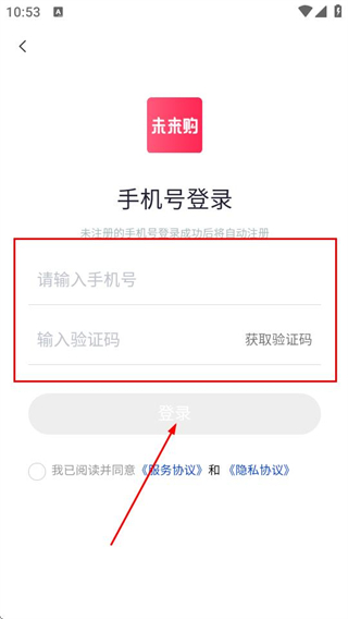 3、在登錄頁面填寫手機號、獲取并輸入驗證碼,勾選協(xié)議后,點擊登錄完成賬號登錄操作。