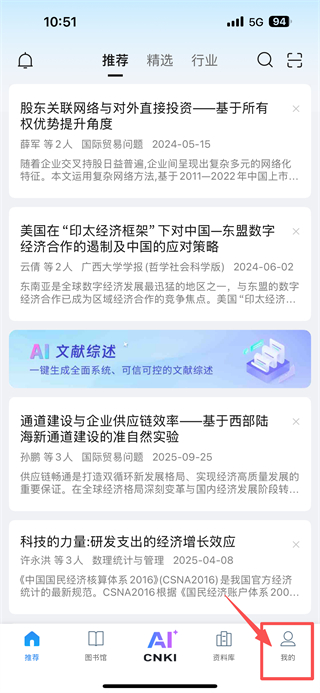 1、打開(kāi)知網(wǎng)類學(xué)術(shù)應(yīng)用,點(diǎn)擊底部我的選項(xiàng),進(jìn)入個(gè)人中心頁(yè)面。