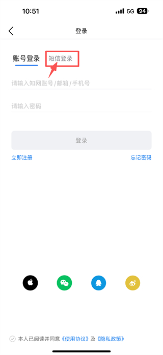 3、選擇短信登錄選項(xiàng),進(jìn)入手機(jī)號(hào)碼驗(yàn)證頁(yè)面。