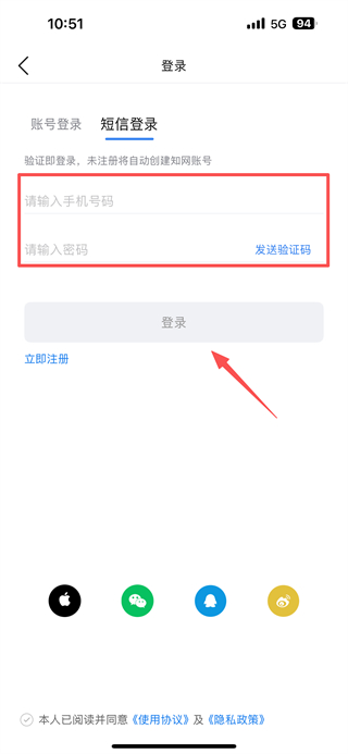 4、輸入手機(jī)號(hào)碼和驗(yàn)證碼,完成賬號(hào)登錄操作。