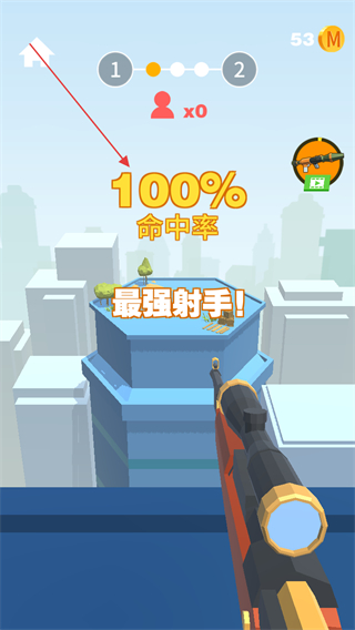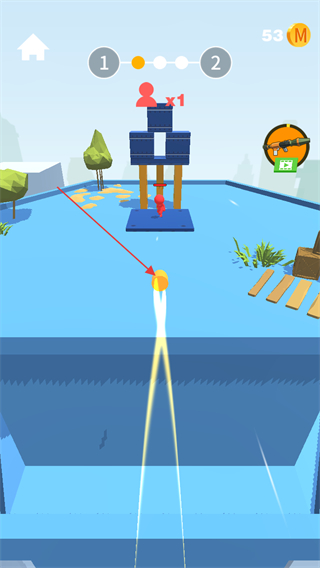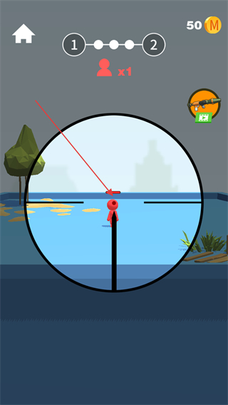 1、進(jìn)入游戲關(guān)卡后,長按屏幕進(jìn)行瞄準(zhǔn),拖動屏幕將準(zhǔn)心對準(zhǔn)目標(biāo)小人。