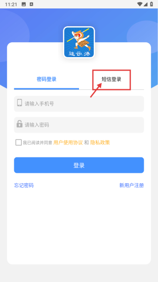 3、選擇短信登錄選項,進(jìn)入手機號碼驗證頁面。