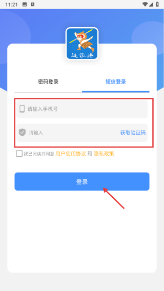 4、輸入手機號碼和驗證碼,點擊登錄按鈕,完成賬號登錄操作。