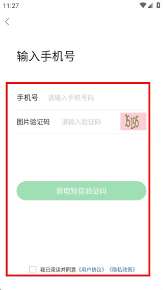 4、在輸入手機號頁面,填寫信息,勾選協(xié)議后即可完成注冊流程。