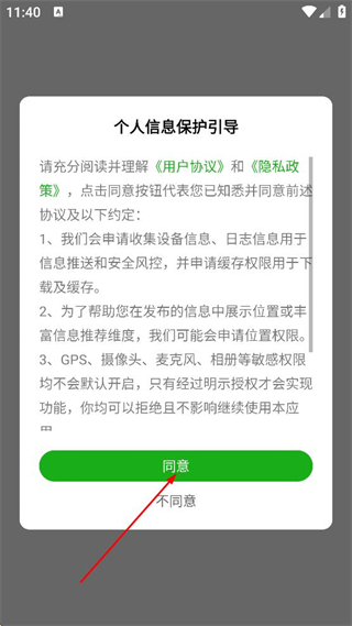 1、在個(gè)人信息保護(hù)引導(dǎo)彈窗中,點(diǎn)擊同意,進(jìn)入首頁(yè)。