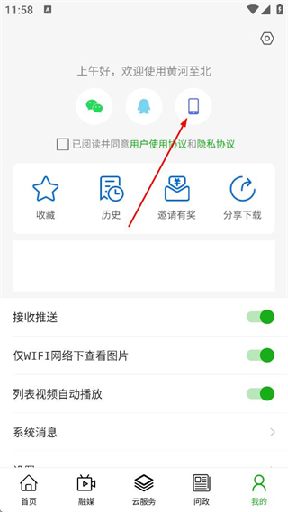 3、在個(gè)人中心頁(yè)面,點(diǎn)擊手機(jī)圖標(biāo),進(jìn)入手機(jī)號(hào)登錄界面。