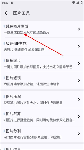 2、在圖片工具頁面點擊純色圖片生成,進入純色圖片生成頁面。