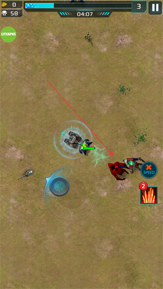 2、在戰(zhàn)場(chǎng)中移動(dòng),躲避敵方小怪,持續(xù)消滅敵人,擴(kuò)大優(yōu)勢(shì)。